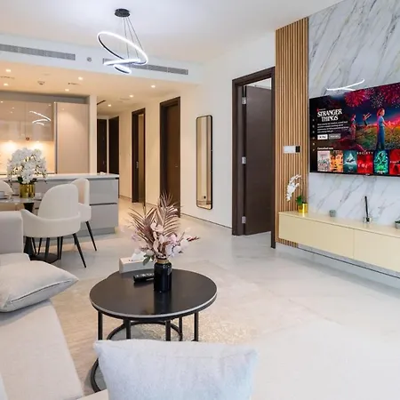 Oferecendo piscina privada, apartamento Premium Chic Fully Furnished 1 Bedroom In Sobha Hartland está localizado a 2.9 km de Aquario de Dubai e Jardim Zoológico subaquatico. Cascata do Canal do Dubai fica a 4.7 km de distância deste apartamento .